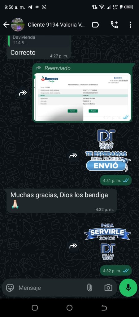 Alrededor de 5 a 10 minutos el dinero estará en la cuenta destino
